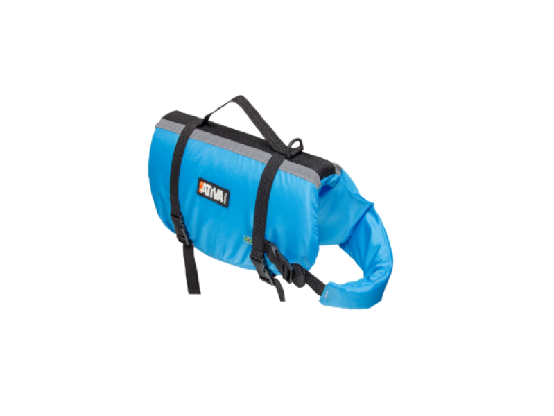 Desenvolvido especialmente para cachorros. O colete mantém o animal flutuando o tempo todo e permite que ele nade por mais tempo.