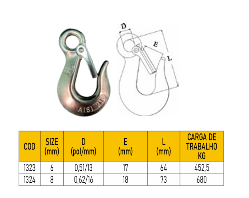 'descricao' => 'GANCHO COM OLHAL ENGATE RÁPIDO INOX',