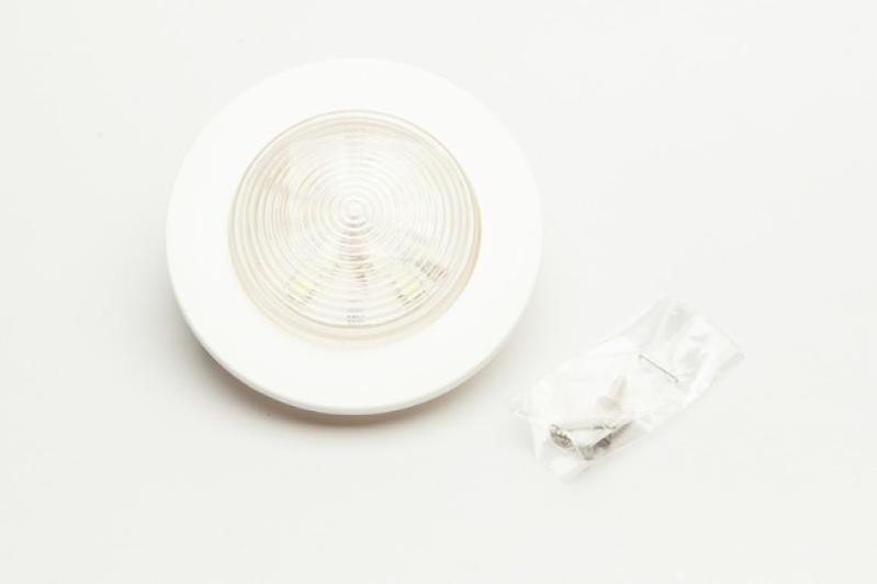 'descricao' => 'Luminária de cabine circular grande de embutir com opção de luz de cortesia acoplada, para evitar a total escuridão quando as luminárias estão apagadas, que pode ser ou não ser utilizada, de acordo com a necessidade do usuário. Com tecnologia a led de alta intensidade, corpo em ABS e lente em PS Cristal, ambos com proteção UV.',